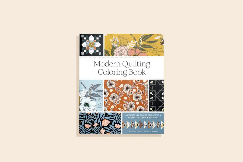 Relax and dive into the colorful world of quilting with this modern quilting coloring book from Moda Fabrics designer Stephanie Sliwinski (@fancythatdesignhouse)