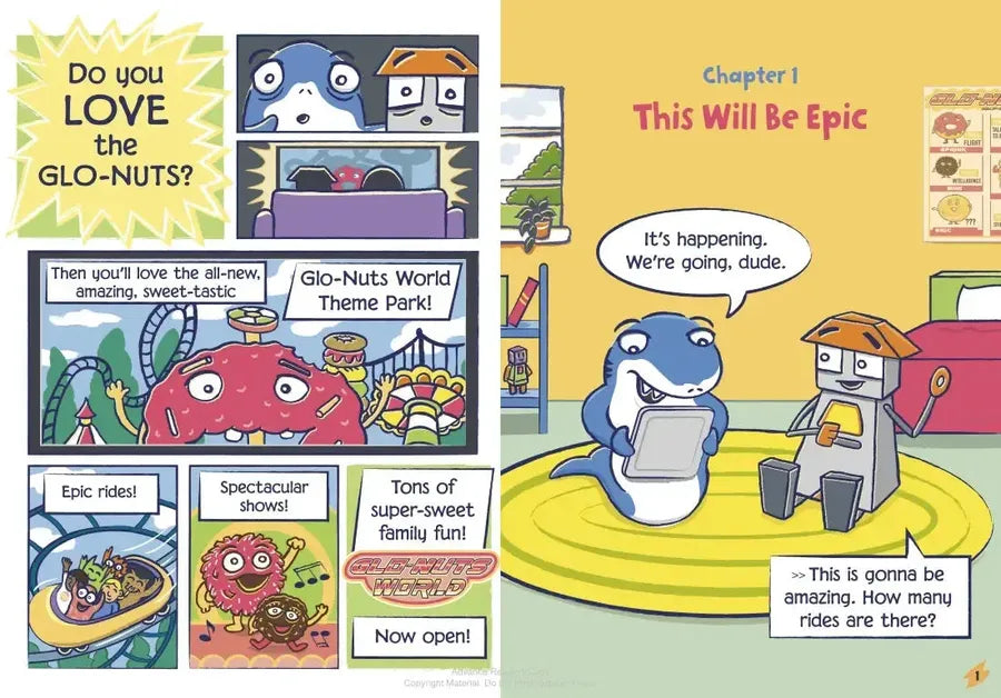 A shark and a robot walk into a doughnut-themed amusement park...No wonder young readers love this new graphic series! Don't miss the latest epic and hilarious adventure.