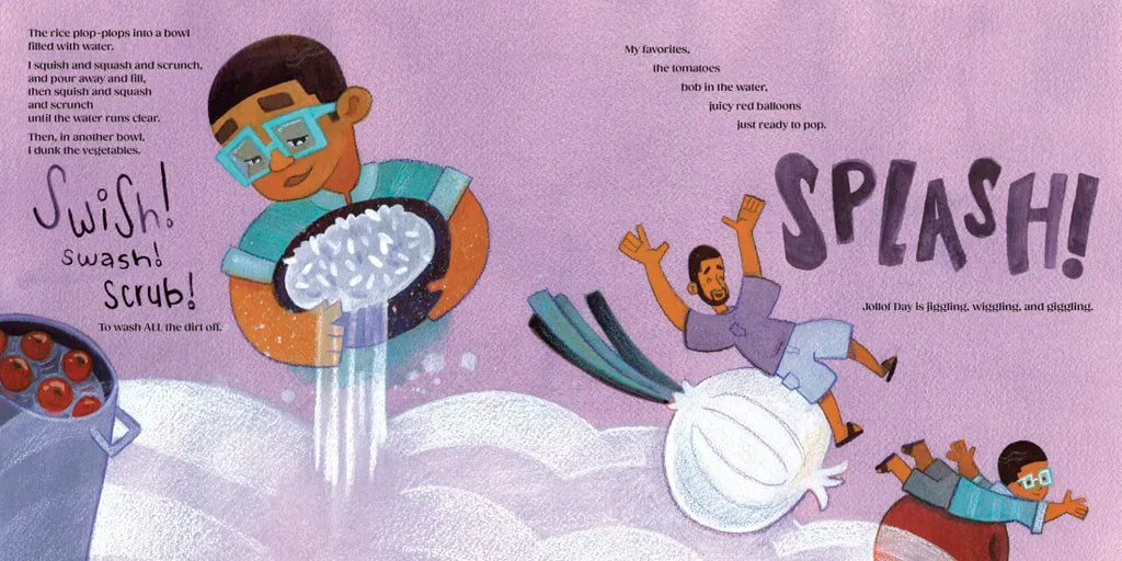 With bouncing text that begs to be read aloud and exuberant illustrations full of momentum, Jollof Day is a celebration of the dishes that bring a family together.