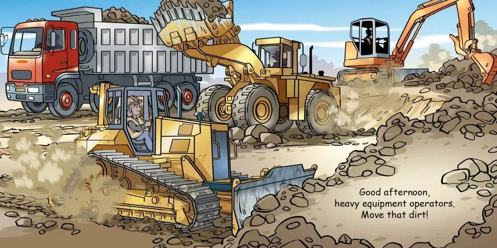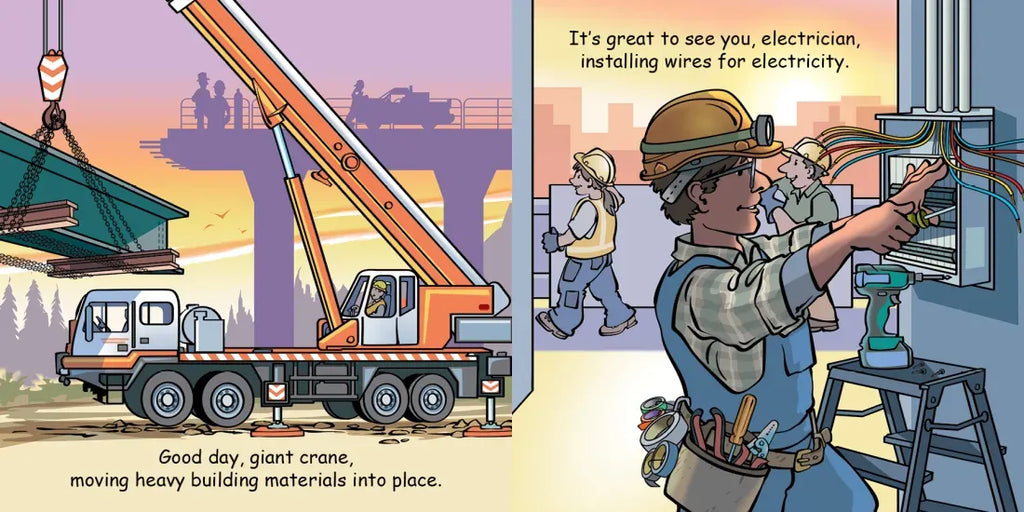 This charming board book takes young readers on an unforgettable tour of a building site.