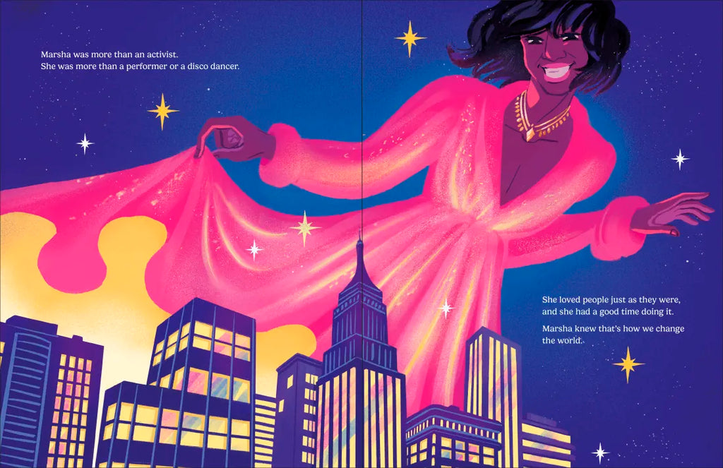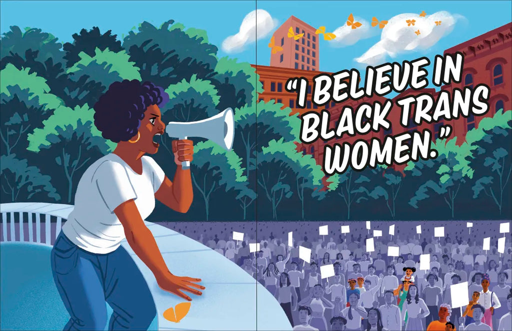 Told through the eyes of an old friend and with bright, buoyant artwork, this jubilant story celebrates the indelible stamp that Marsha P. Johnson left on New York City and beyond, culminating in a powerful convergence one day in June 2020, when activists from across all five boroughs rallied loudly for Black trans lives.