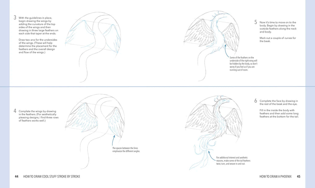 Detailed, step-by-step instructions that take readers through every drawing from start to finish, using color to illustrate new lines so the reader can clearly see the next steps.