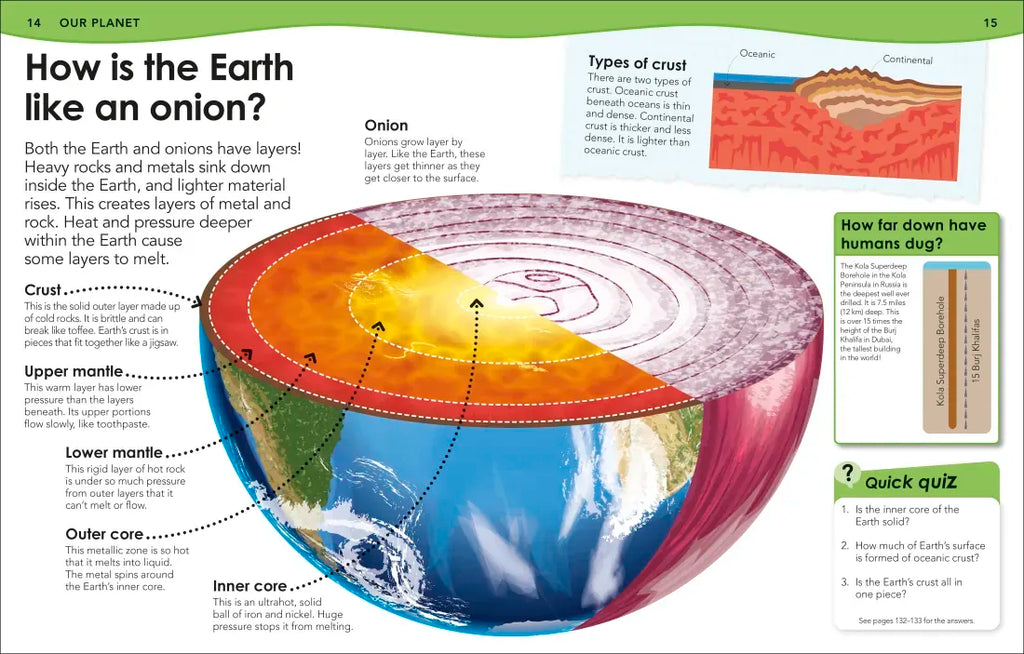 - Answers more than 200 questions, such as, "Does land stay still?" and "How do raindrops make a cave?" in an engaging question and answer format