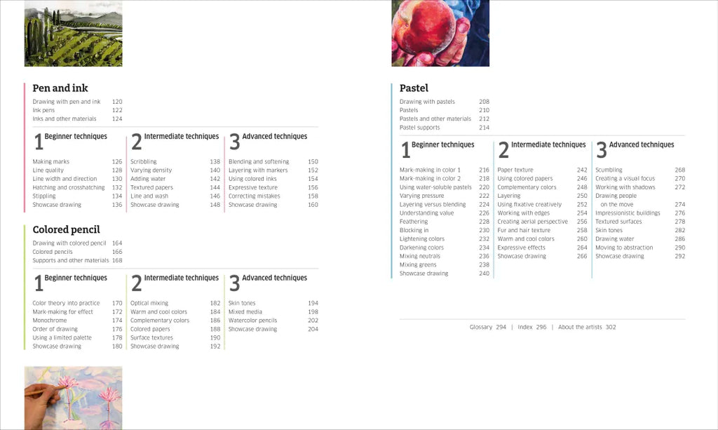 • Includes more than 90 detailed step-by-step workshops for pencil, charcoal, pen and pastel techniques