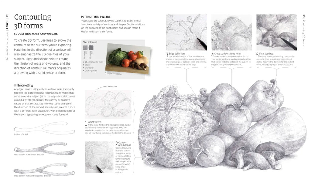 Learn more than 80 drawing techniques, from cross-hatching and stippling to blending and using colored pencils. Develop your own artistic style and grow as an artist by following the step-by-step drawing tutorials through beginner, intermediate and advanced art projects.