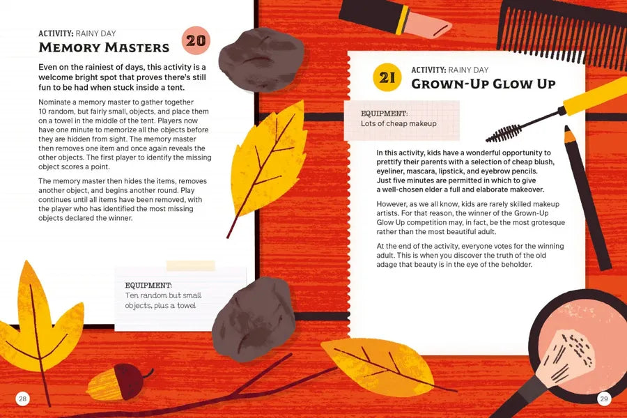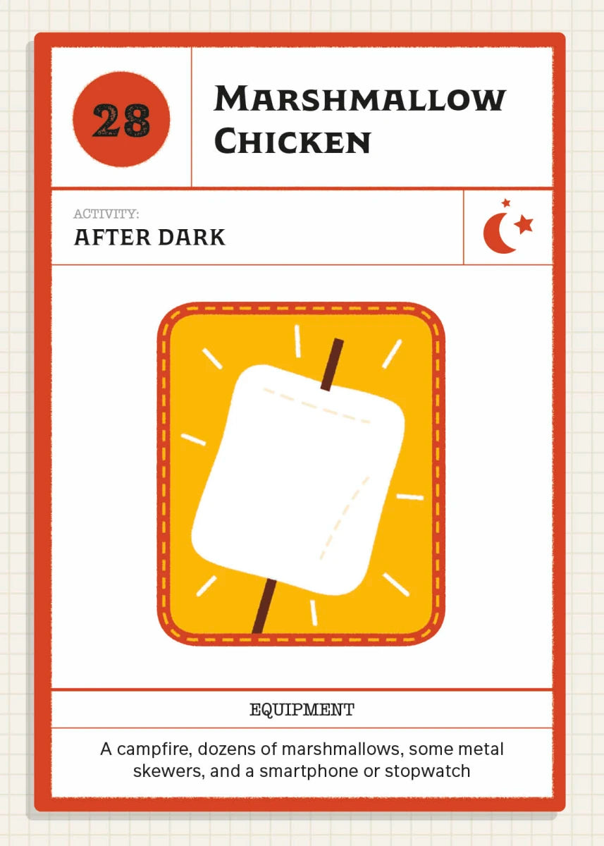 Challenge themes covered include look-and-find, creative, active, LOL, and more, with each one only ever needing equipment regularly taken on a camping trip or items you can easily find in nature. So whether it’s going on a creepy crawly hunt, taking part in the sleeping bag triathlon, or trying to sing your favorite song around the campfire with eight marshmallows shoved in your mouth, kids and adults are going to love taking part.