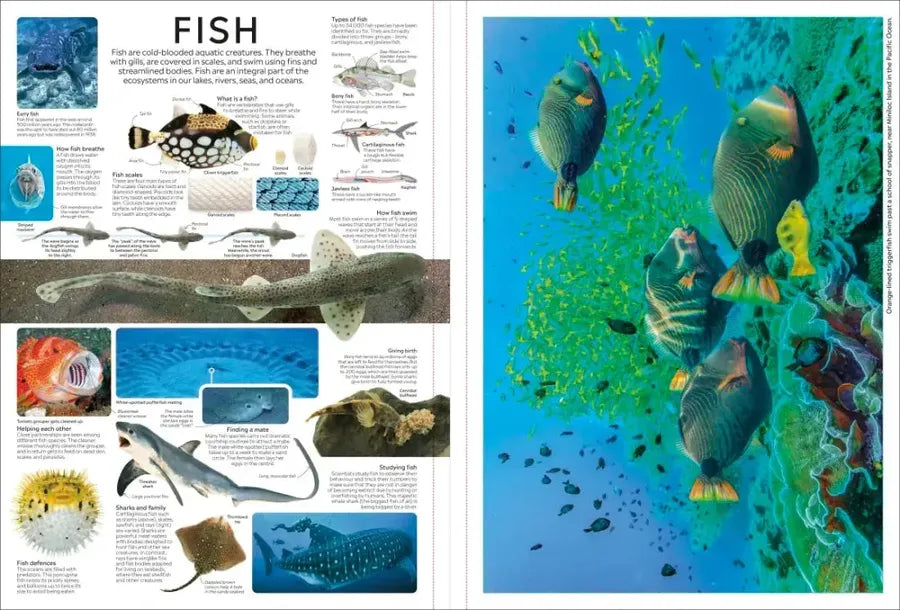 • Striking supersize images of a collection of topics, including Sharks, Wonders of the World, Fossils, Planets, and much more.