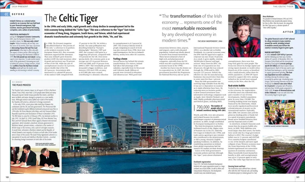 • Pages including information about the Celtic Tiger, Brexit, Covid, as well as the lives of Queen Elizabeth II and Prince Philip