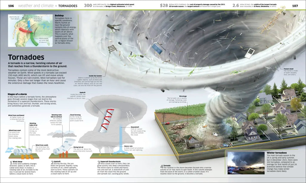 Forming part of a fantastic series of kid's educational books, this bold and brilliant kid's encyclopedia uses ground-breaking CGI imagery to reveal the world as you've never seen it before. Informative, diverse in subject matter, easy-to-read and brimming with beautiful graphics, young learners can explore the incredibly detailed cross-sections and cutaways that reveal the inner workings of the world around them, featuring floods, hurricanes, volcanoes, deserts and more.