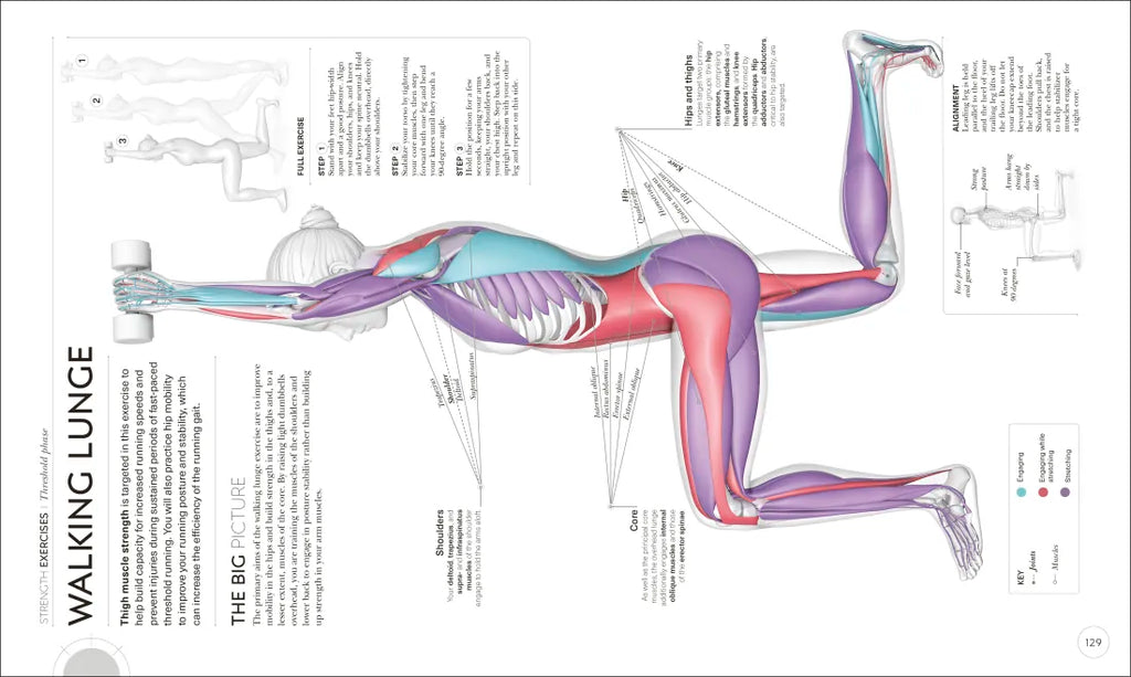 Included in the Science of Running are exercises and training programs that target each muscle to ensure you become a stronger, better runner. The clear CGI images show annotations to muscle mechanics so you know you are taking the right steps and perfecting technique.