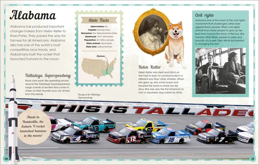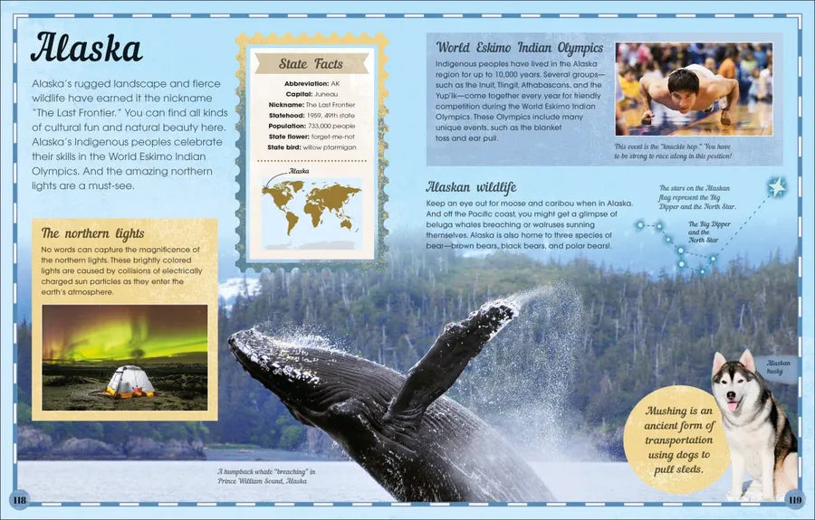 From north to south and coast to coast, America's 50 states await! Learn all about the natural wonders, man-made landmarks and incredible history that make each state unique with this fun-filled state-by-state guide. No plane ticket is needed!