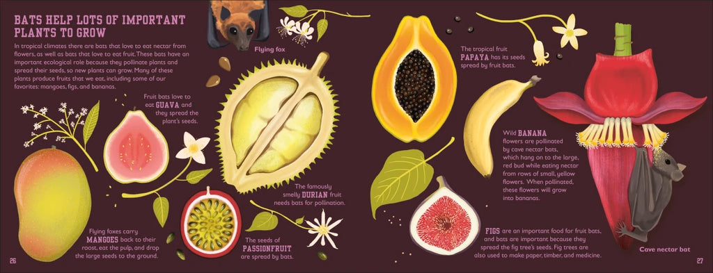 From the way they fly, to how they communicate with each other, how bats hunt, and why they sleep upside-down, each of the world's 1,300 types of bat is unique and utterly fascinating. Bats are also incredibly important to the environment, from gobbling up pests to spreading seeds through the forests. They also pollinate over 500 different species of plants throughout the world, including fruits such as mangoes and bananas.