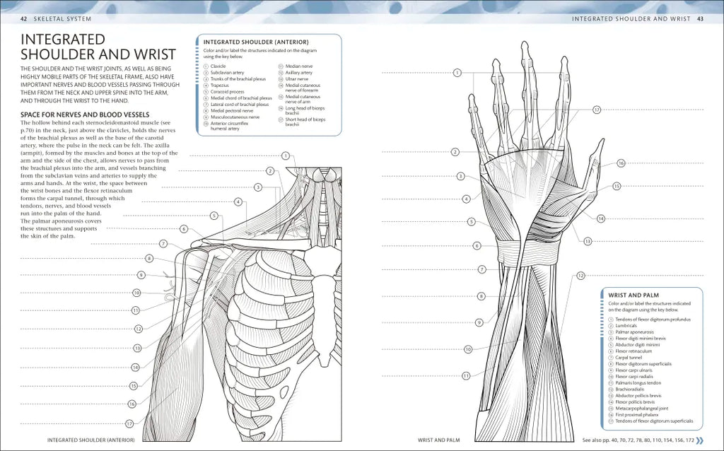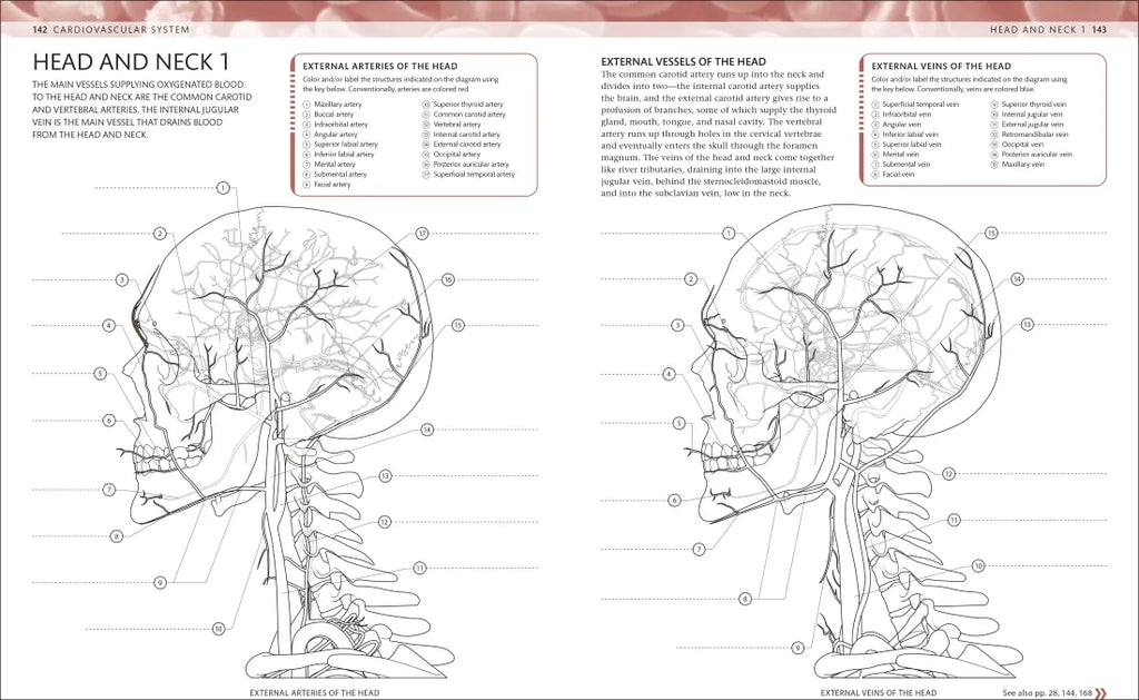 Filled with black-and-white line artwork, this anatomy coloring book helps you study anatomical illustrations in an interactive and fun way. The key clearly explains what structures must be colored and, where relevant, which colors to use. Then, you are left to color and label the parts and systems of the body while improving your knowledge of human anatomy.