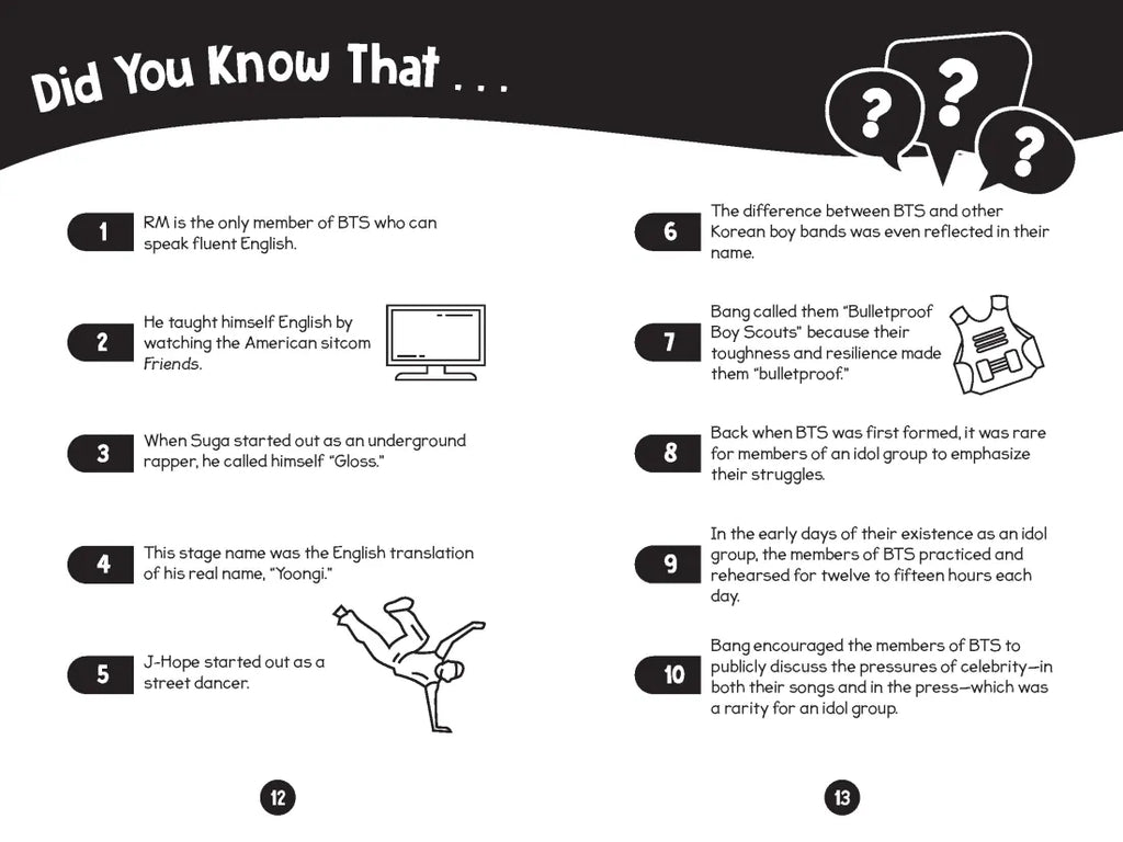 Packed with fun facts about Bangtan Sonyeondan, quick quizzes to test Tannie knowledge, and bonus pages for journaling, this is a must-have for any members of ARMY.