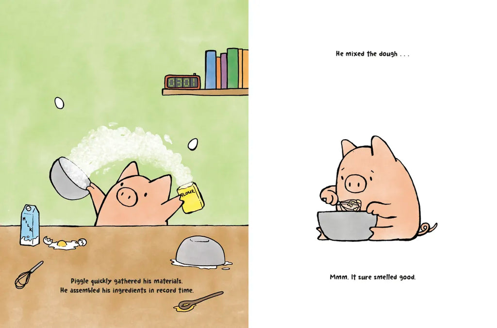 Piggle is so excited to host all of his best friends for a party, but preparing for their visit is trickier than it seems. He can't wait to wow them with the gorgeous cake he's made, or the pizza, or all the muffins, or his stunning cheese platter. But a hungry Piggle may just be his own worst enemy, and he may just devour every delicious creation he makes. What's a pig to do?