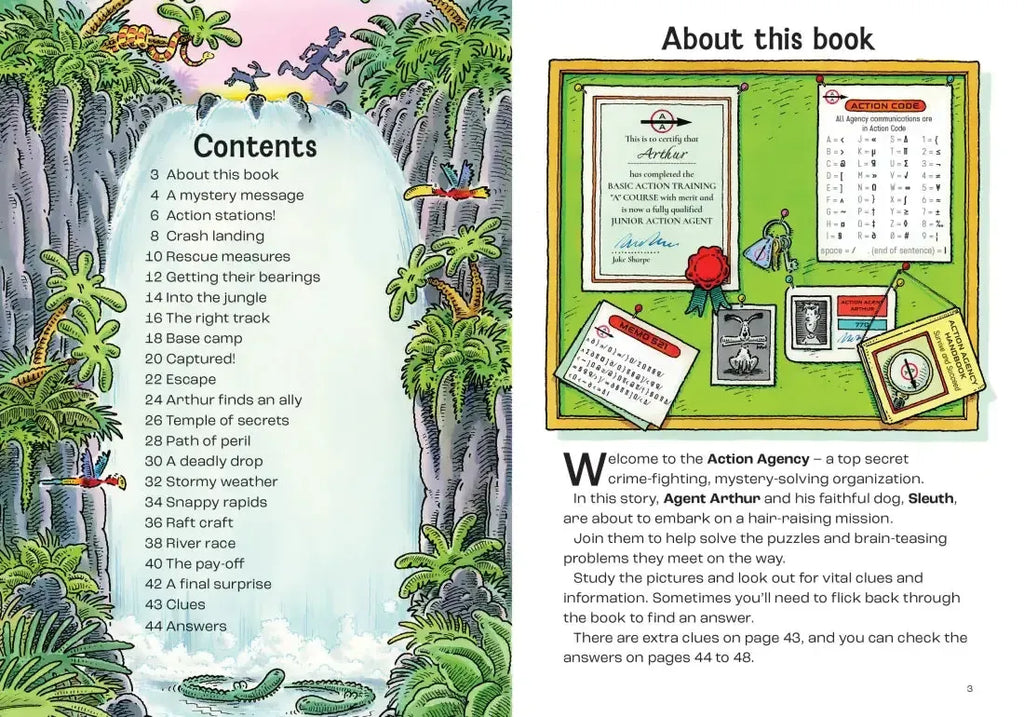 Arthur is the newest recruit to the Action Agency. This mission finds him crash-landing into a jungle filled with danger. He needs your help to solve a series of brain-teasing puzzles to outwit a gang of ruthless crooks. Packed full of interactive puzzles and comic-strips, this Usborne classic has been updated and enhanced for a whole new generation of puzzle adventurers.