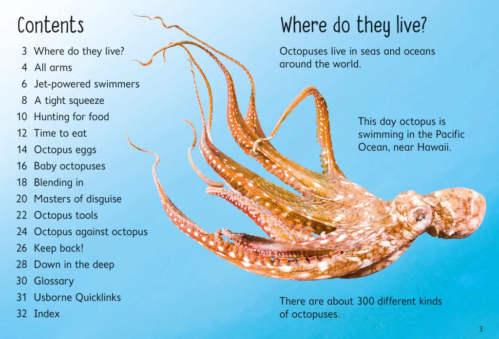 Where is an octopus's mouth? How do octopuses hide from other sea creatures? What do their babies look like? This book has the answers to these questions and many more, along with photographs, step-by-step illustrations, simple text and links to websites with video clips and activities.