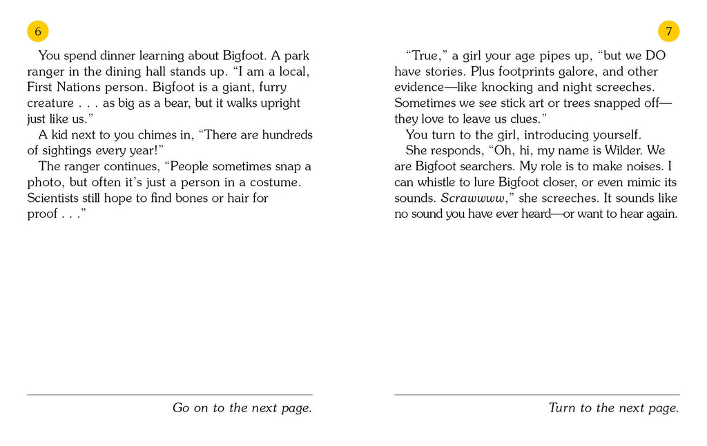 YOU are finally on spring break after a rainy winter. All you wanted was to spend your school vacation in Hawaii on the beach, but your parents have other plans. You're going camping at Bigfoot Research Camp in the rainy Pacific Northwest. You are afraid you will die of boredom until a real live Bigfoot shows up. Maybe this camping trip won't turn out to be so boring after all?