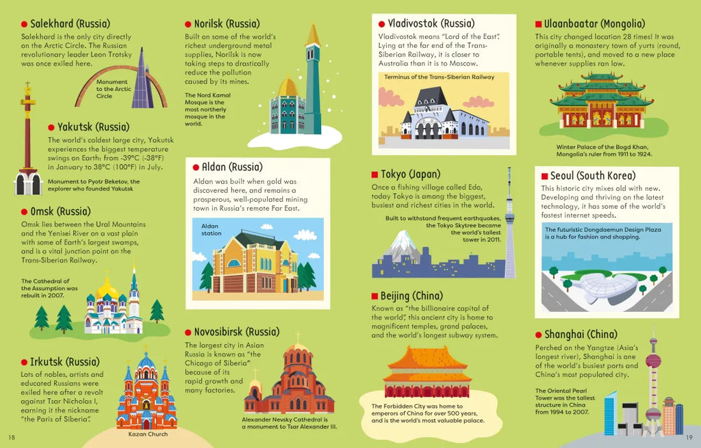 With bright illustrations and snappy introductions to each city, this charming book and jigsaw set is an ideal way for children to have fun learning the names and locations of famous cities all over the world, and to find out about their landmarks, culture and heritage.