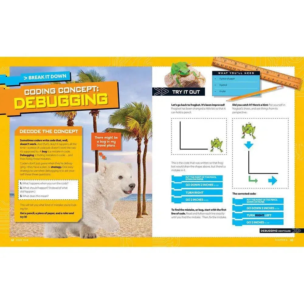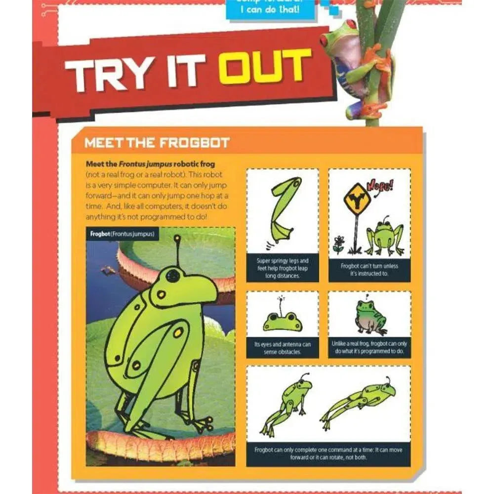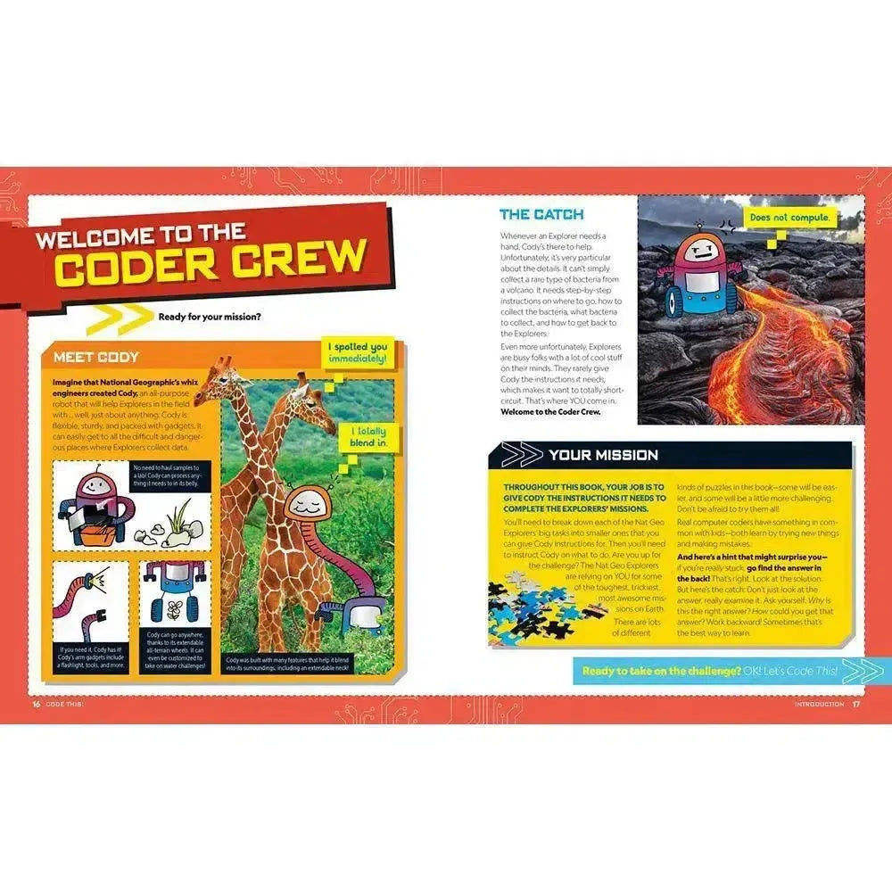 Then you can put your skills to the test to help Cody the Robot. Whenever the Code This! Explorers need a hand, Cody is there to help. Unfortunately, this robot is very particular about the details. It can't simply collect a rare type of bacteria from a volcano. It needs step-by-step instructions on where to go, how to collect the bacteria, what bacteria to collect, and how to get back to the Explorers. Even more unfortunately, the Explorers are superbusy folks with a lot of cool stuff on their minds. That means they rarely give Cody the instructions it needs, which makes it want to totally short-circuit. That's where YOU come in to help Cody succeed at some of the trickiest, most awesome missions on Earth.