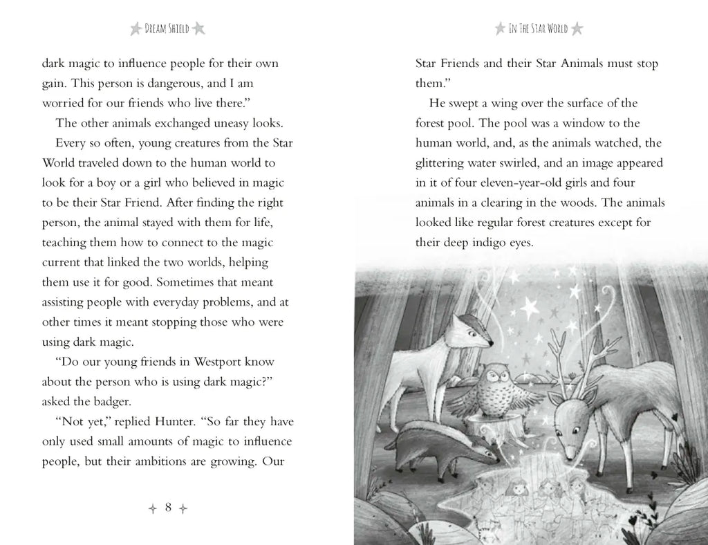 In the Star Friends chapter book series, Mia and her friends Lexi, Sita, and Violet all discover that they are Star Friends -- they can communicate with the animals that have traveled from the Star World. The animals show the girls how to use their unique magic abilities to do good. A whole world of magical adventures awaits!