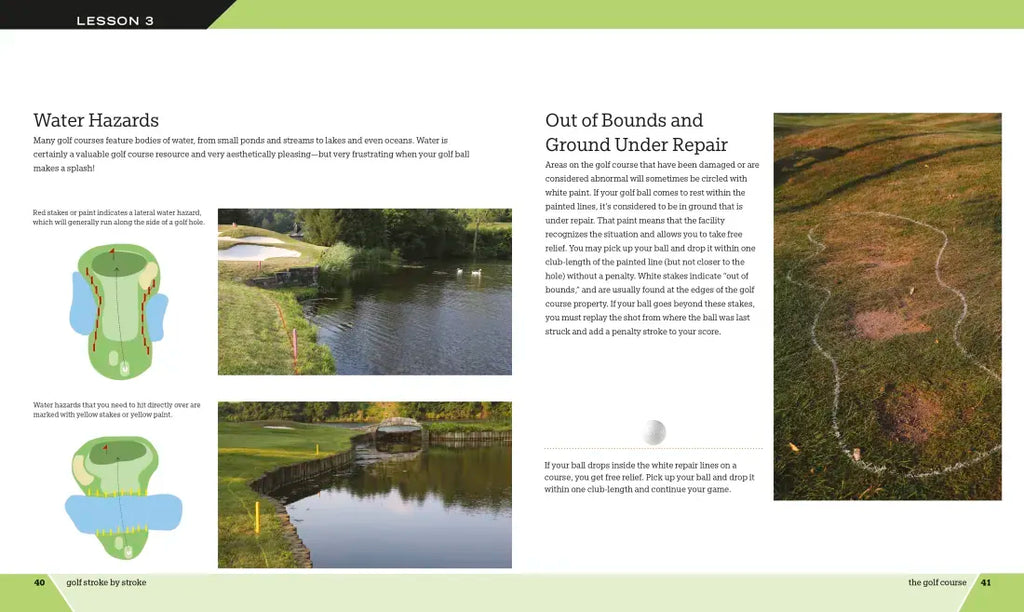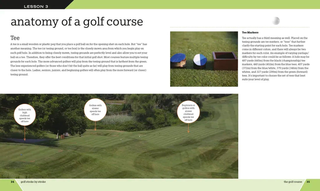 • Detailed information on golf rules, lingo, and etiquette, including keeping score and calculating handicaps