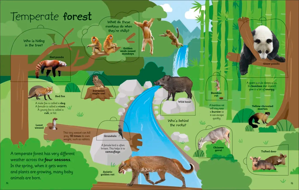 Explore ten illustrated habitats with more than 100 animals and spot clear, real-world photographs of the animals resting, running, feeding, flying, and more, as they go about their lives in the wild. Then lift the flaps to find out more!