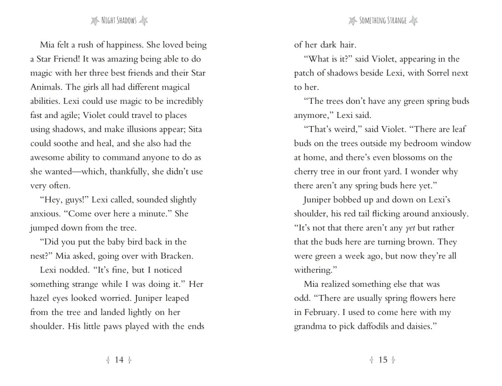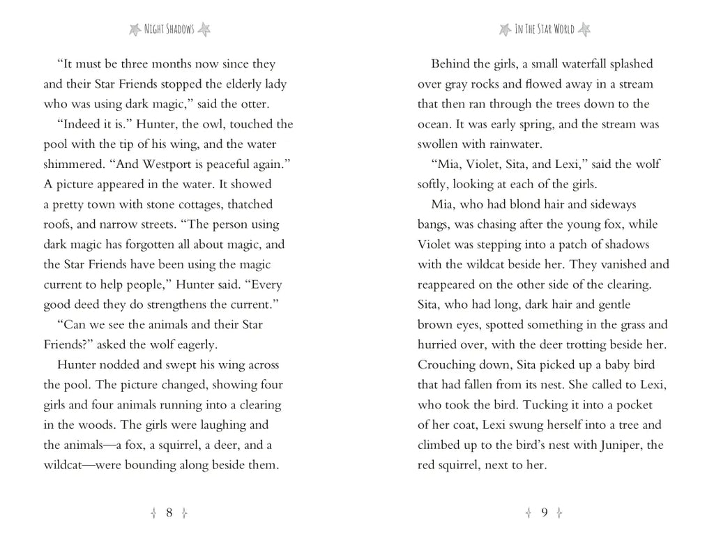 In the Star Friends chapter book series, Mia and her friends Lexi, Sita, and Violet all discover that they are Star Friends -- they can communicate with the animals that have traveled from the Star World. The animals show the girls how to use their unique magic abilities to do good. A whole world of magical adventures awaits!