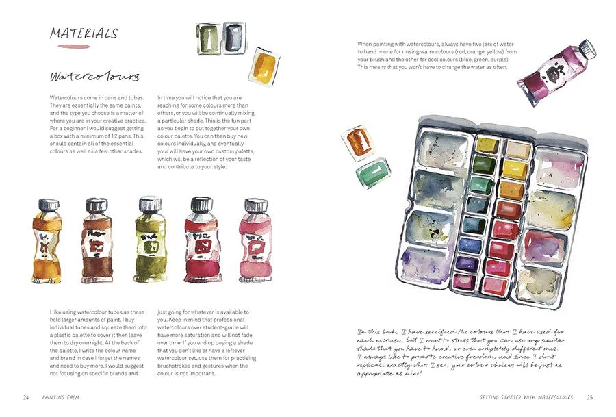 Find inner calm and happiness in this beautiful, meditative and earthy watercolour instruction book from nature lover, teacher and artist Inga Buivadavice.