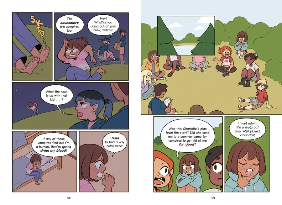 What happens when a very human kid ends up at the wrong summer camp—FOR VAMPIRES?! This quirky and heart warming graphic novel about making friends and getting in trouble is perfect for fans of Witches of Brooklyn.