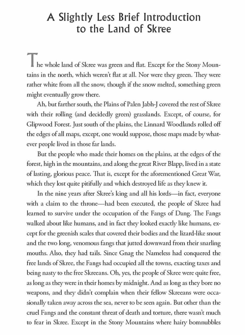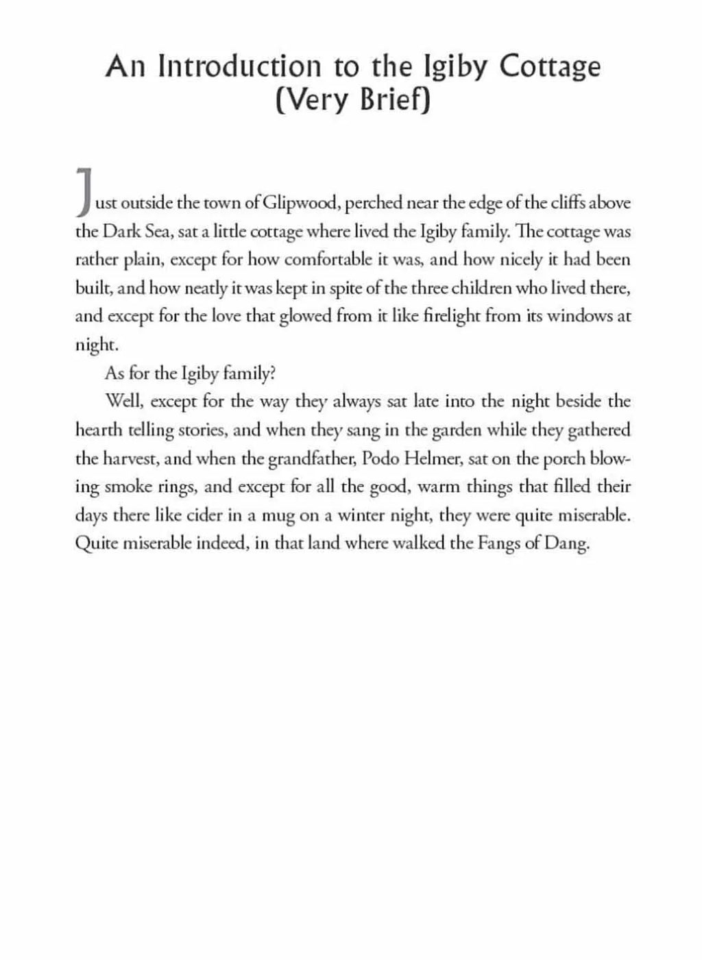 Janner Igiby, his brother, Tink, and their disabled sister, Leeli, are gifted children as all children are, loved well by a noble mother and ex-pirate grandfather. But they will need all their gifts and all that they love to survive the evil pursuit of the venomous Fangs of Dang, who have crossed the dark sea to rule the land with malice. The Igibys hold the secret to the lost legend and jewels of good King Wingfeather of the Shining Isle of Anniera.
