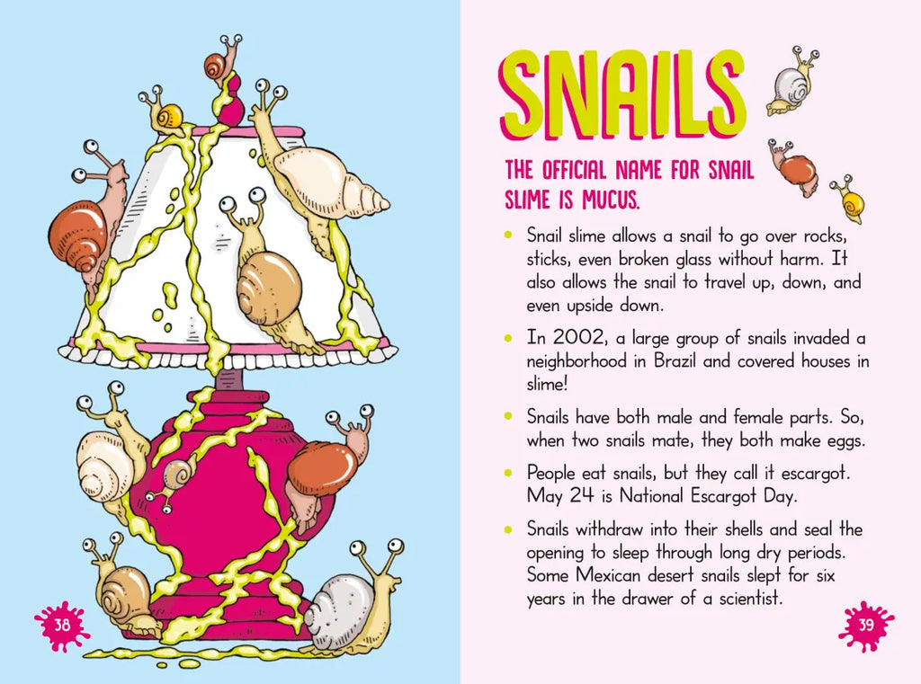 Expand your knowledge on all things gross with these fun facts about nature’s yuckiest bugs, creatures, and animal habits! Perfect for fans of the Weird But True! series.