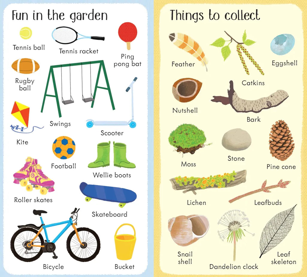 This gorgeously illustrated word book shows 199 things found in a garden, from grey squirrels and stag beetles to tulips and cherry trees. Children will love recognizing familiar flowers, trees and birds, and discovering more unusual things to spot such as pond creatures, log pile creepy-crawlies and nocturnal animals.