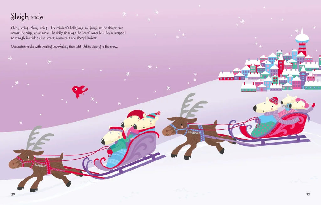 Join the adorable animals of Winter Wonderland as they have fun in the snow, go shopping for presents and dance in the forest. Add penguins tobogganing down the slopes, fill a glistening ballroom with waltzing mice, make a display of twinkling lights and decorate trees with lots of sparkly stars. This delightful book comes with over 200 stickers, including extra-magical shiny silver stickers.