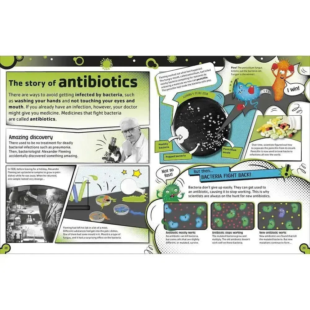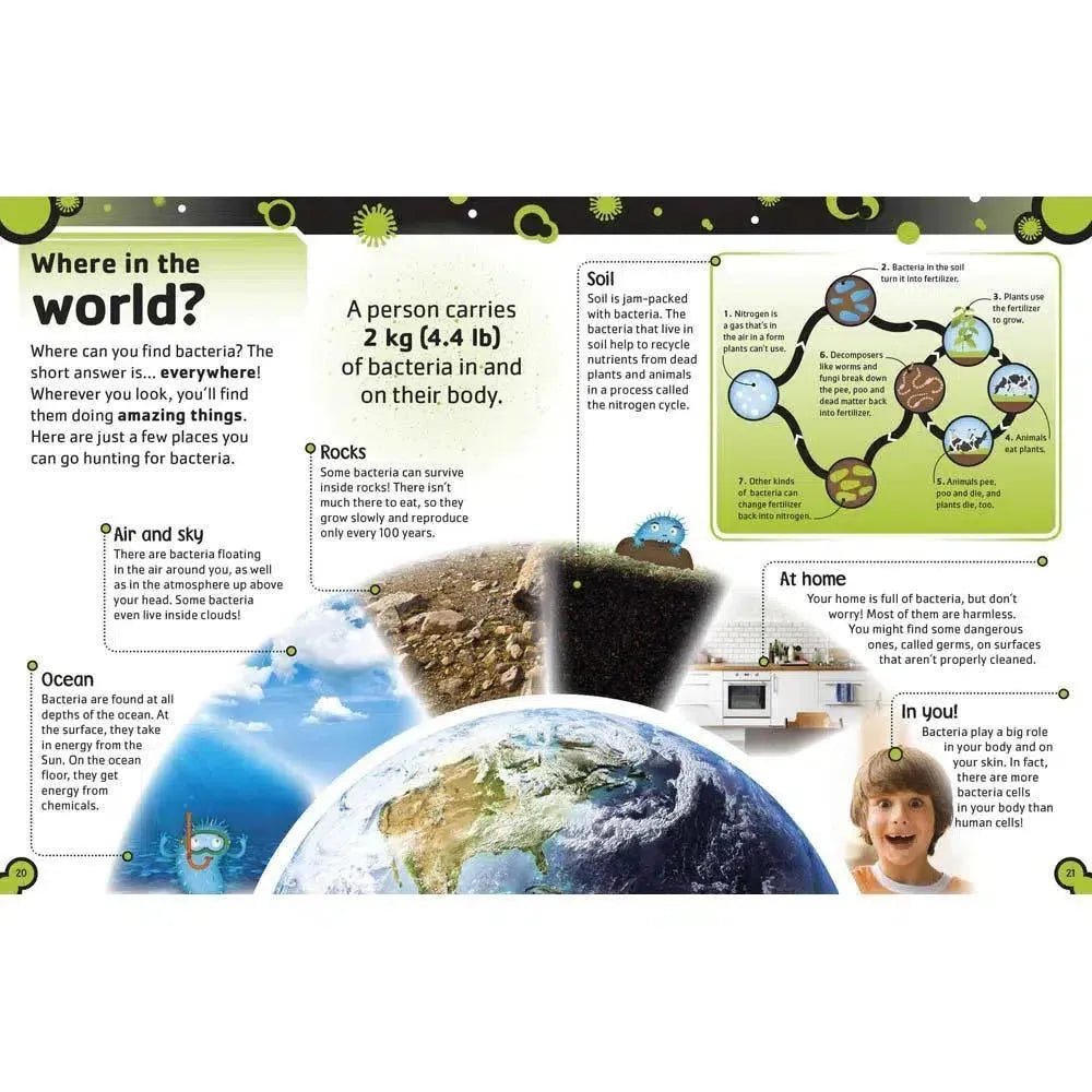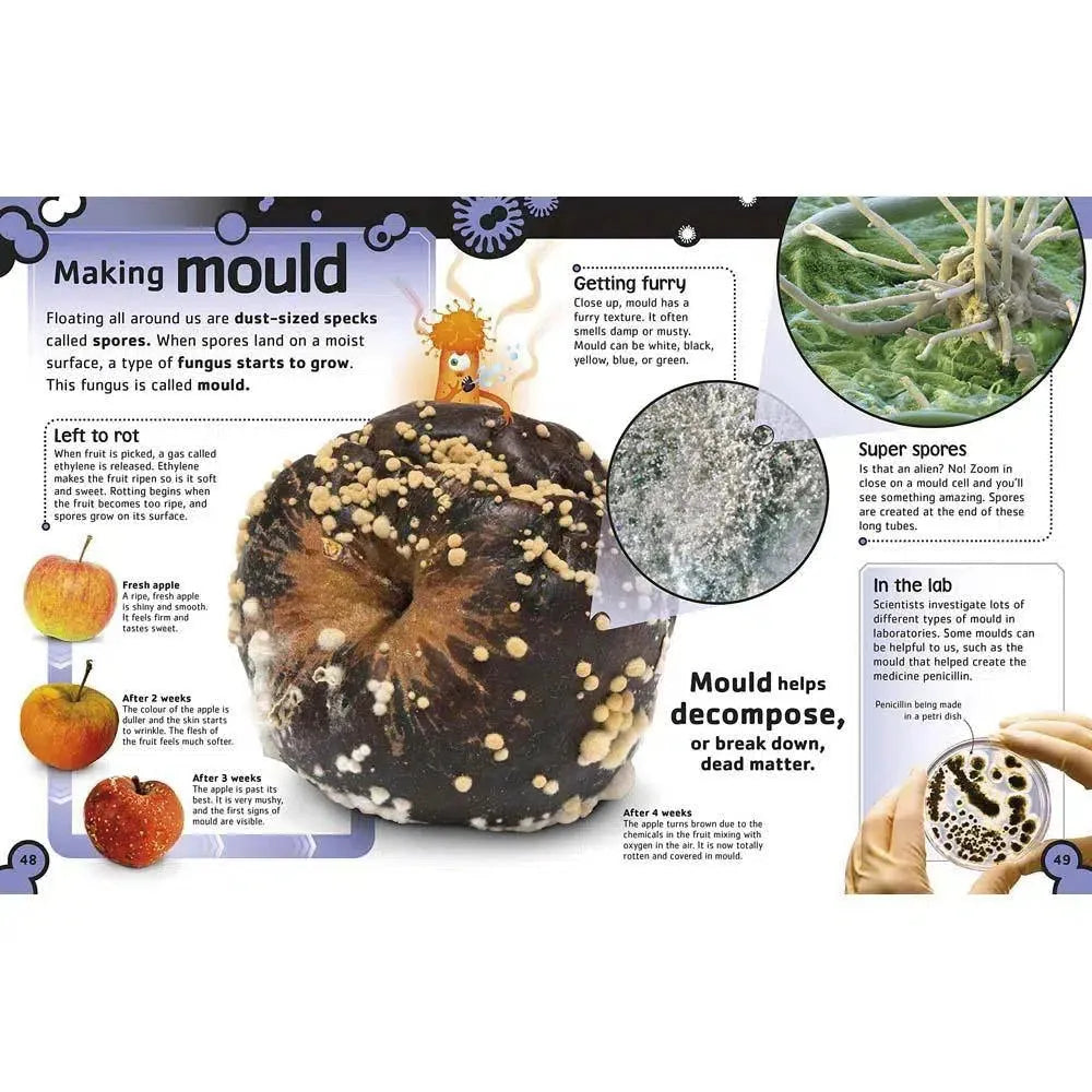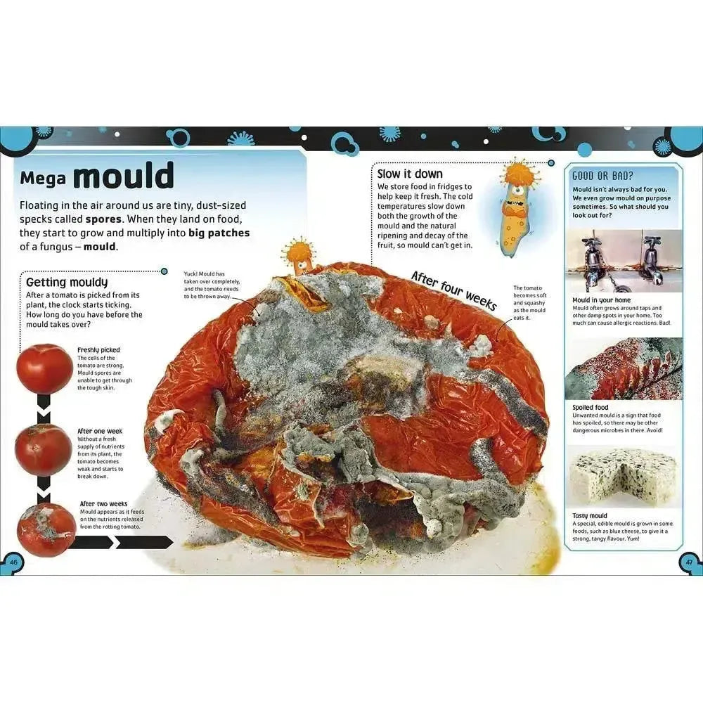 Children can learn about how miniature life forms affect our world, for good and bad, through real-life examples of microbes in action. Bacteria are some of the most important organisms on Earth, and without them our bodies wouldn't be able to work. Fungi are used to make bread and cheese. Viruses and other germs can make us ill, but are fought by our amazing immune system. All these stories and more are told in clear and engaging language by bestselling author and science comedian Steve Mould.
