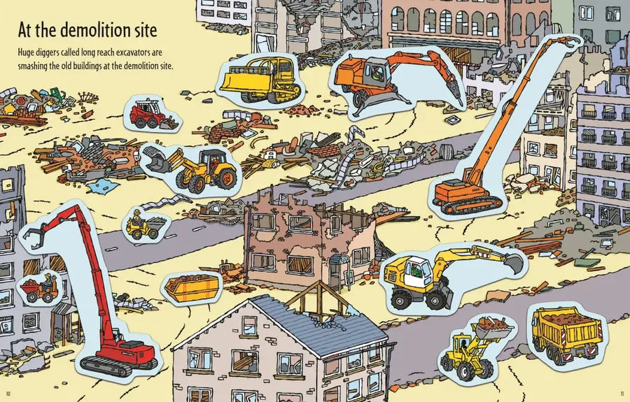 There are dozens of different diggers to discover in this fun and lively book. Children will enjoy using the stickers to fill in the scenes, including making a road, under the ground and at the demolition site. Includes over 100 colourful stickers.