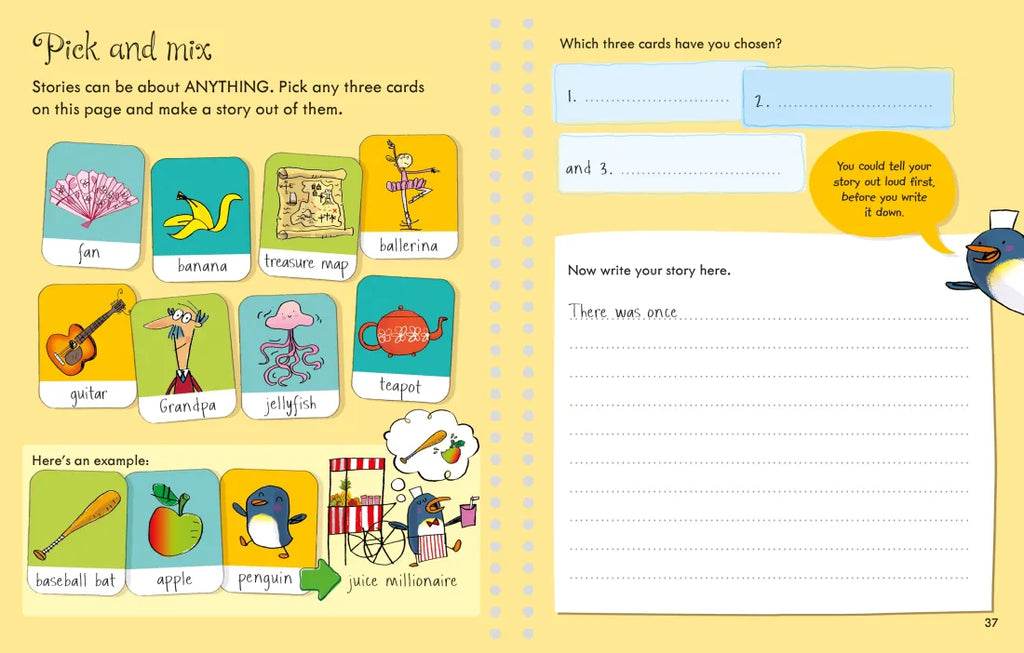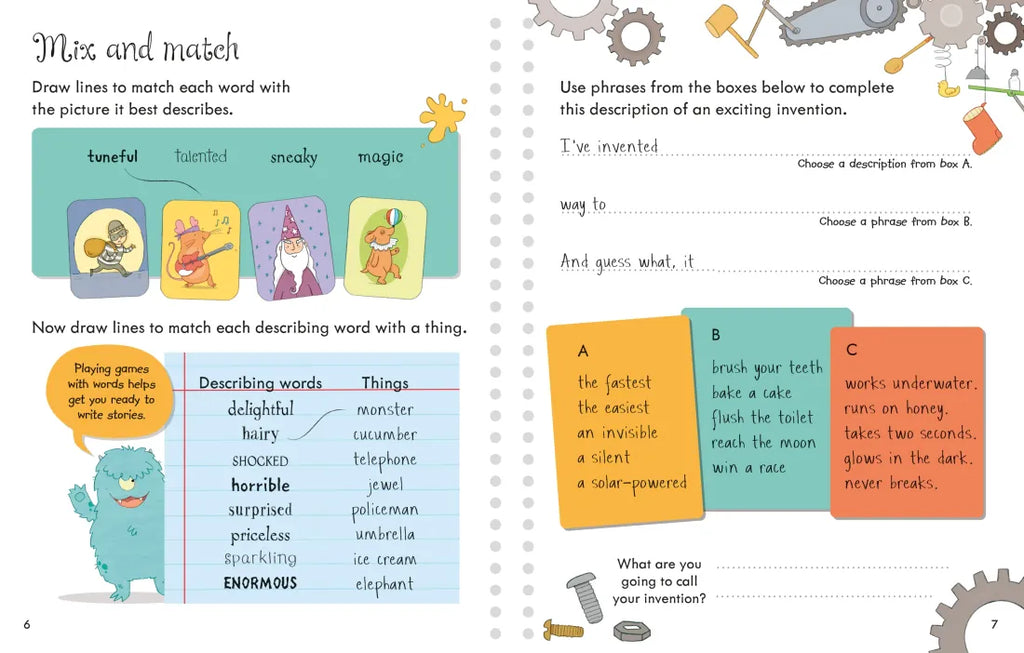 A colourful write-in book, full of curious characters, unusual places and exciting ideas to help young children write imaginative stories. With fun activities including word games, story mazes, and inventing diary entries for characters, and tips on developing characters, writing descriptively and using similes and metaphors. A fun and creative book that will spark inspiration and let children's imaginations run wild.