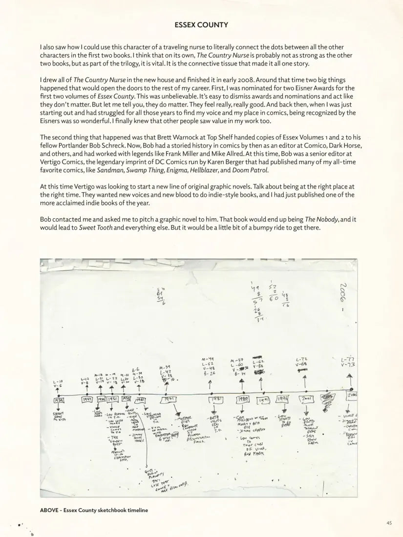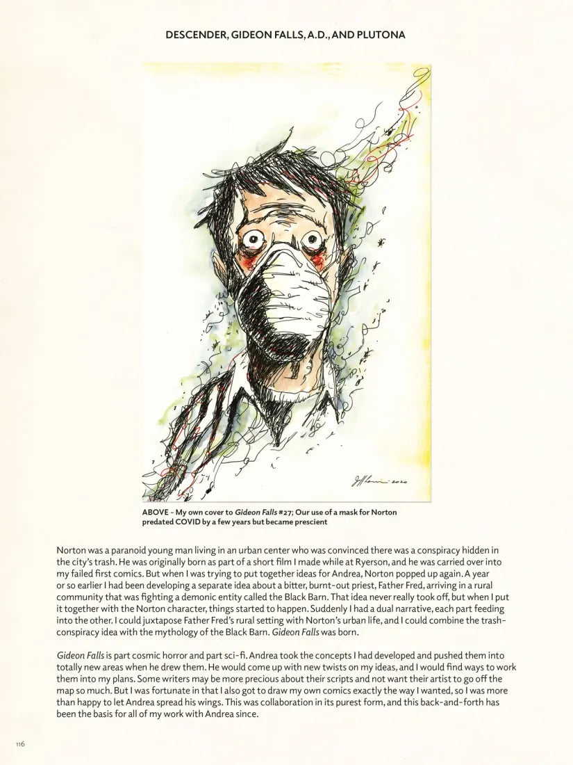 Featuring his brilliant work from Sweet Tooth, Essex County, Black Hammer, Descender, and so much more. Lemire takes the reader book-by-book, writing essays about the making of each project, showcasing artwork from all of them, details about his personal life during the creation of each book, sharing some never-before-seen process material on each book, and unpublished stories as well. This is the ultimate book for Jeff Lemire and modern comic book fans.