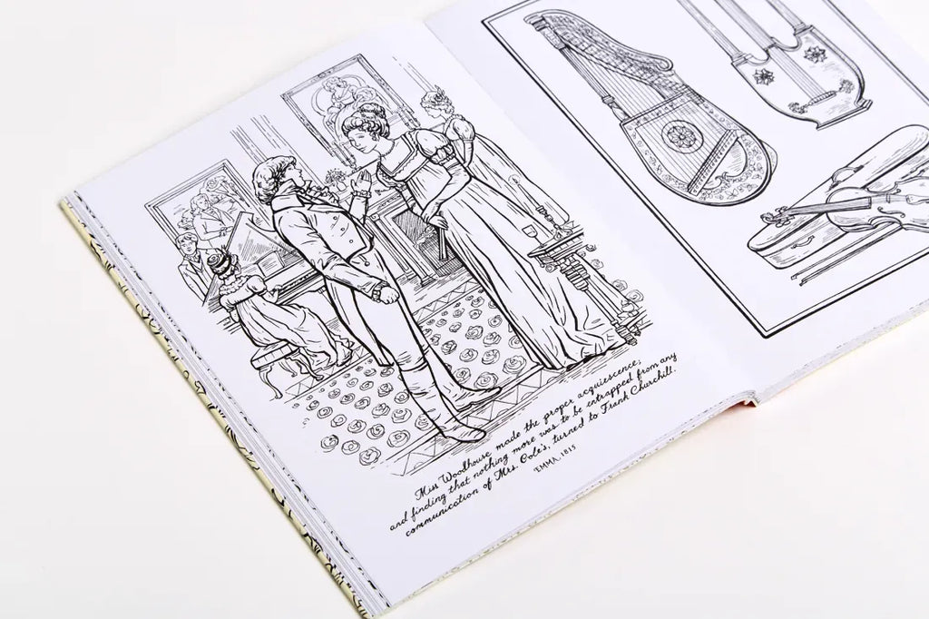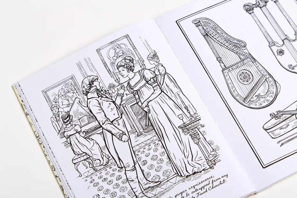 Color in Elizabeth and Darcy, Anne and Captain Wentworth, Emma and Mr. Knightly, and all your favorite scenes and moments from the world of Jane Austen's classic novels.