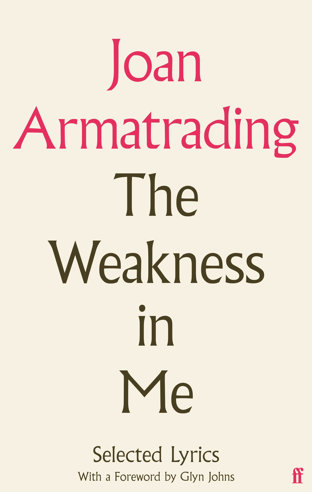 Selected and arranged by the author, and featuring a foreword by revered record producer Glyn Johns, The Weakness In Me presents the lyrics of Joan Armatrading for the first time in one unique volume.