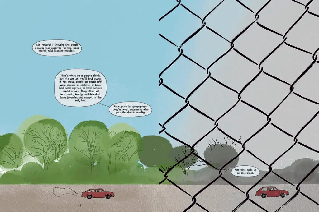 This graphic adaptation of Prejean’s memoir offers an accessible way to engage with one of the most complex moral and emotional issues facing our country. Rose Vines skillfully interlaces recent developments with the original account, amplifying its relevance for today’s readers. Catherine Anyango Grünewald’s illustrations urge us to grapple with the humanity of this story, drawing an evocative, unforgettable portrait of mercy and justice.