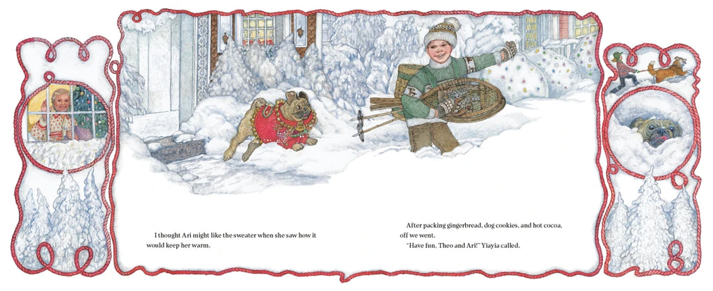 It’s Christmas morning, and Theo’s Yiayia has knitted his dog, Ari, a special red sweater. But when Ari shows his disinterest in the gift, Theo steps in to show his grandmother just how much they appreciate her kindness. He proposes a hike to Echo Lake, just him and Ari, where he can use his new snowshoes and Ari can sport his new sweater!