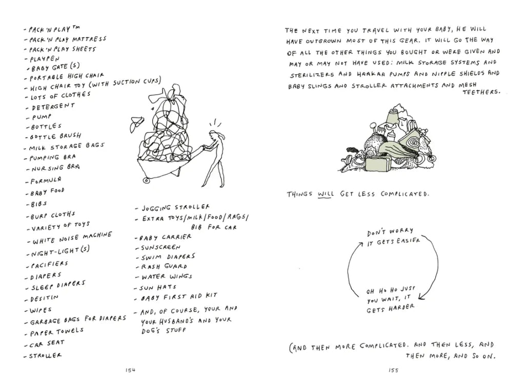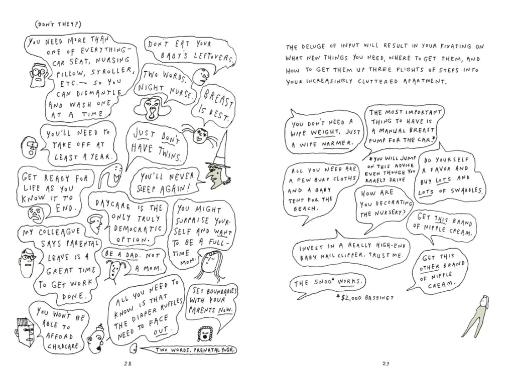 In How to Baby, Liana takes her witty and lacerating cartoons (“Hobbies for Pregnant Women: Waiting on Hold with the Insurance Company”) and weaves them together with comic essays (“You Married a Brute. Worse. You’re a Nag: Go Ahead and Argue with Each Other”), handy lists (“Nesting. The Comprehensive List of What to Buy and Why Getting Things Used Is Dangerous and Unamerican”), and profound observations. Together, these brilliant pieces form an immersive and comprehensive narrative whole—a baby book, a resource, and an emotional balm—for our time.