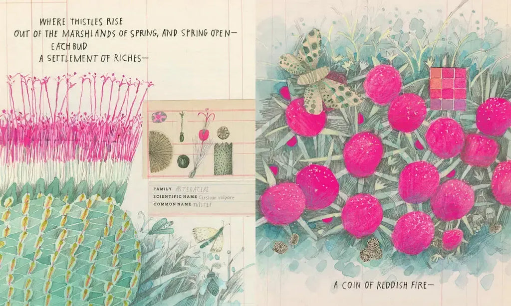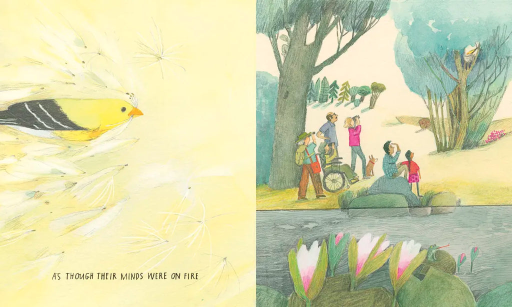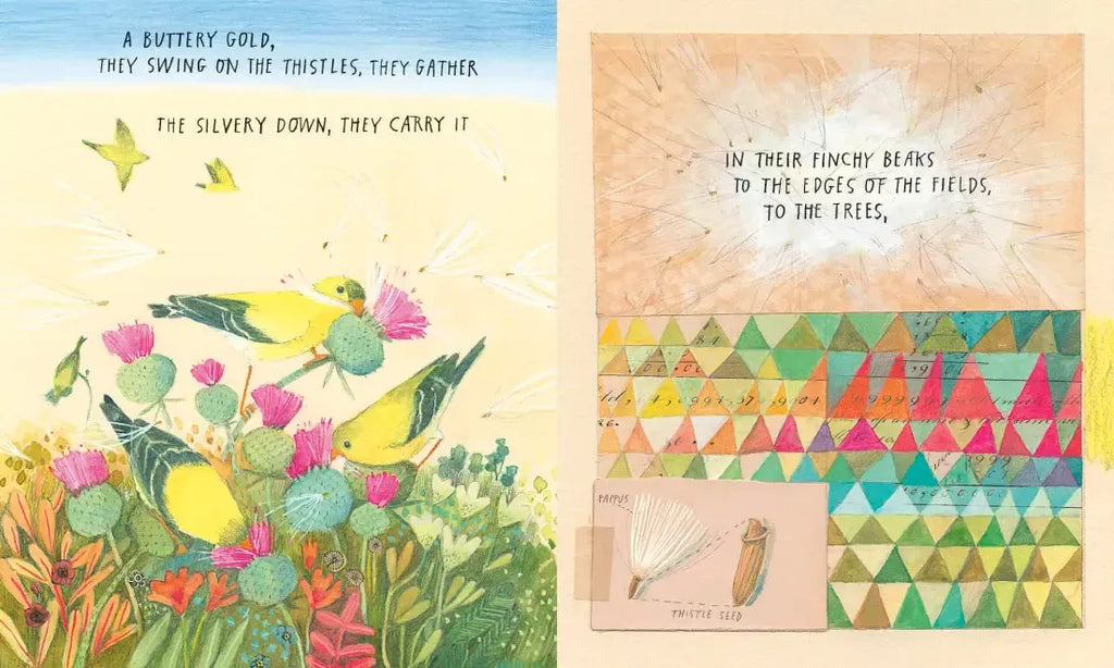 Illuminated by the exquisite mixed-media artwork of Caldecott Honoree Melissa Sweet, Goldfinches fills the reader with wonder for the beauty around them and gratitude for the ability to bear witness to it.