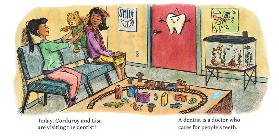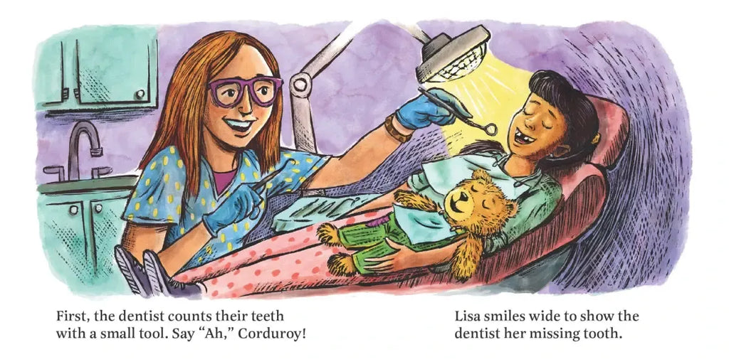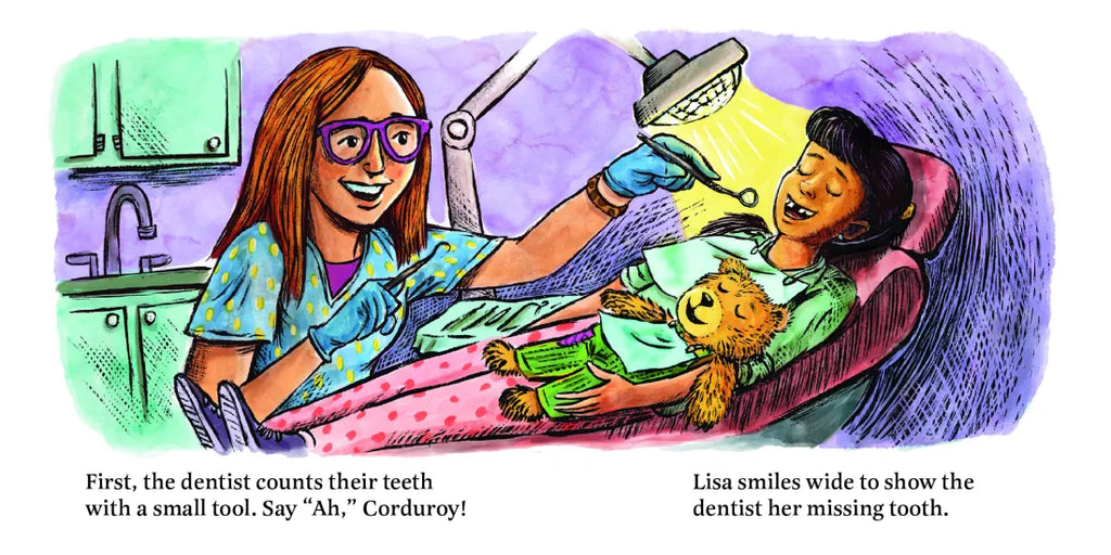Corduroy and Lisa are excited to see their friendly family dentist, shows them how they count their teeth, cleans them, and rinses them. And who knows--maybe they'll even get a surprise at the end of their visit for being such great patients!