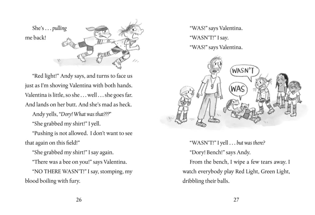 Dory is on her first soccer team with her best friends, Rosabelle and George. She’s ready to score a billion goals, but Rosabelle is having a meltdown over wearing cleats, and George is mysteriously acting like a baby. So, Dory attempts to befriend a new teammate, Valentina. But making a new friend isn’t so easy, especially when Valentina kicks the ball perfectly every time, steals all the attention, and has a way of making a billion sound kinda small. Determined to outshine Valentina as the star of the team, Dory seeks help from her reliable imagination to flip the score.