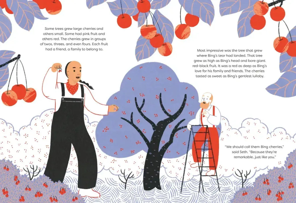 Long ago, Ah Bing was a father who travelled across the sea from China looking for work. It was in Oregon where he met a man who hired him to work in his orchards, where eventually, Bing cultivated the delicious cherries we know of today.