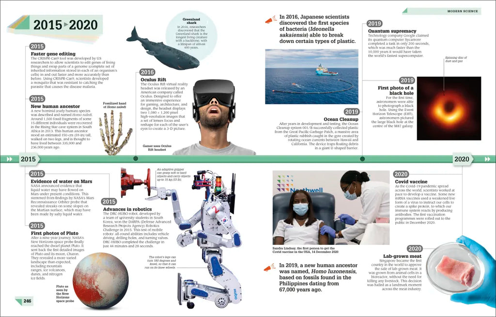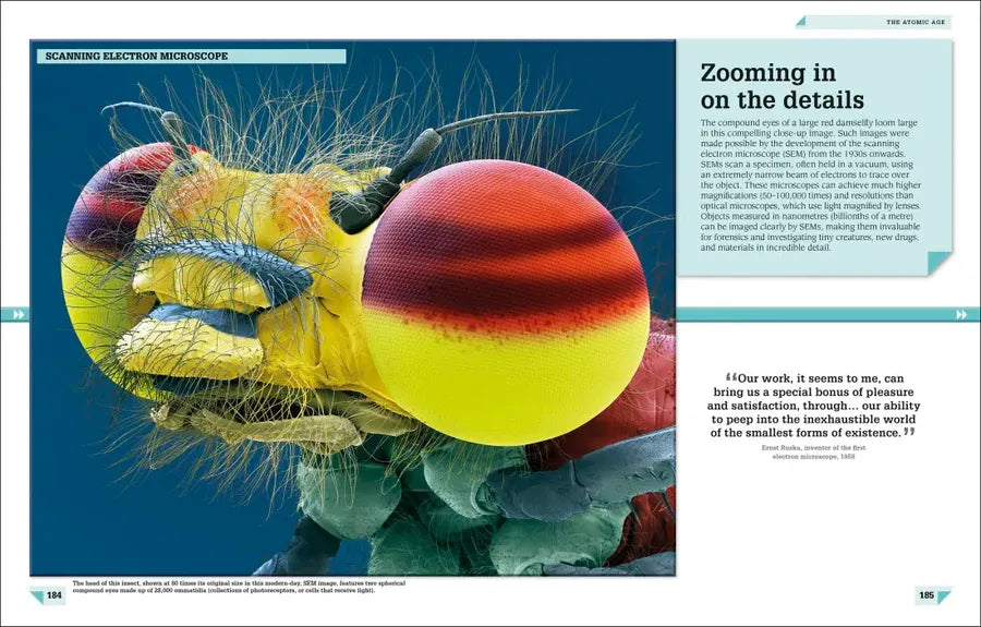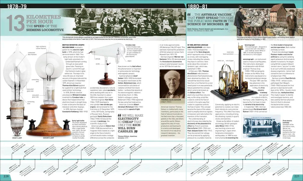 From simple machines to modern-day marvels, you’ll follow incredible illustrated timelines that plot the entire history of science and highlight the most momentous discoveries. A jaw-dropping collection of more than 1,500 photographs, illustrations, maps, and graphics charts the evolution of science year by year, century by century.