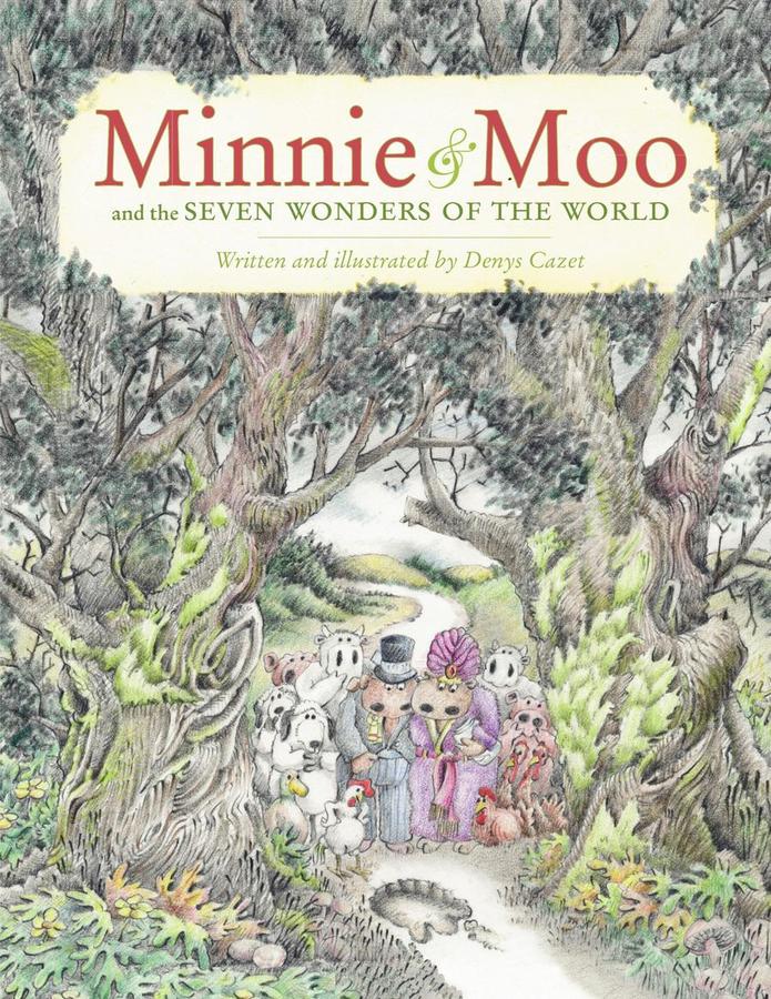No! He mustn't! Not if Minnie and Moo can help it. Not if the other animals are willing to follow our heroines on a paid tour of Moo's version of the Seven Wonders of the World. Not if that thing in the woods minds its own business.