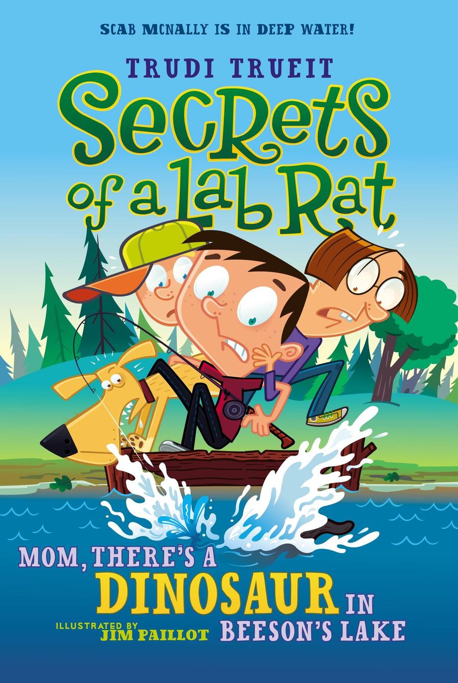 In the all-new hardcover Mom, There’s A Dinosaur in Beeson’s Lake, fourth grader Scab McNally is convinced he glimpsed some kind of swamp creature while fishing on Beeson’s Lake, but his mom won’t let him find proof until he passes a swimming class. Scab is NOT ready for the deep end of the pool, so it’s back to his top-secret lab to diagram some special schemes and plans for the occasion.